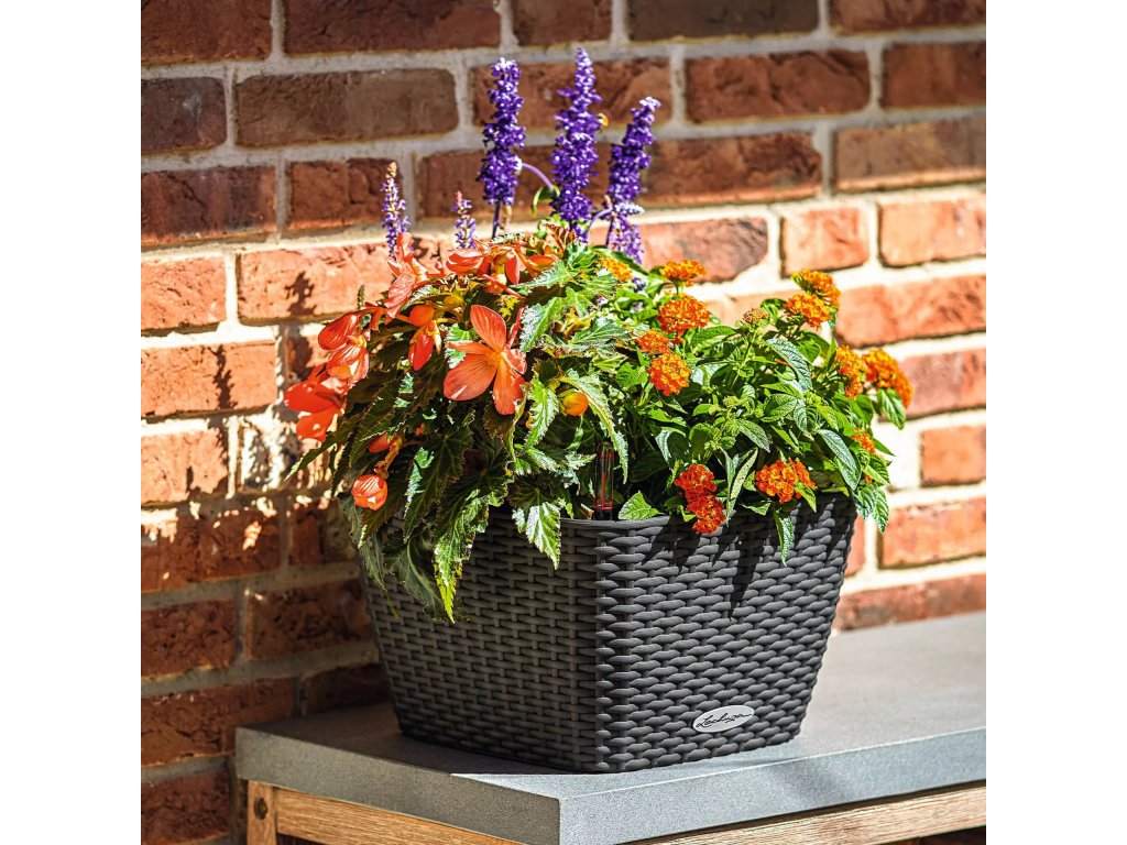 Lechuza BACINO je všestranným a velmi oblíbeným samozavlažovacím květináčem s povrchem imitující pletený ratan. Ať už na podlaze, stole, na zahradní stěně nebo na podestě – s výškou 18 centimetrů a délkou vrchní strany 30 centimetrů je BACINO dokonalým doplňkem stylového designu každého exteriéru nebo interiér