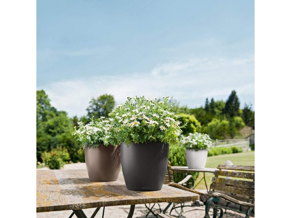 Lechuza Classico Color - samozavlažovací květináč je vyrobený z probarveného plastu a jeho povrch je matný. Dodáván je v v trendy barvách které dodává prostoru sofistikovaný vzhled, zatímco inteligentní systém samozavlažování se postará o to, aby vaše rostliny byly vždy v optimálním stavu. Speciální nádrž na vodu umístěná ve spodní části květináče udržuje optimální vlhkost půdy a zajišťuje, že rostliny dostávají přesně tolik vody, kolik potřebují. Tím se eliminuje starost způsobená přemírou nebo nedostatkem zalévání.