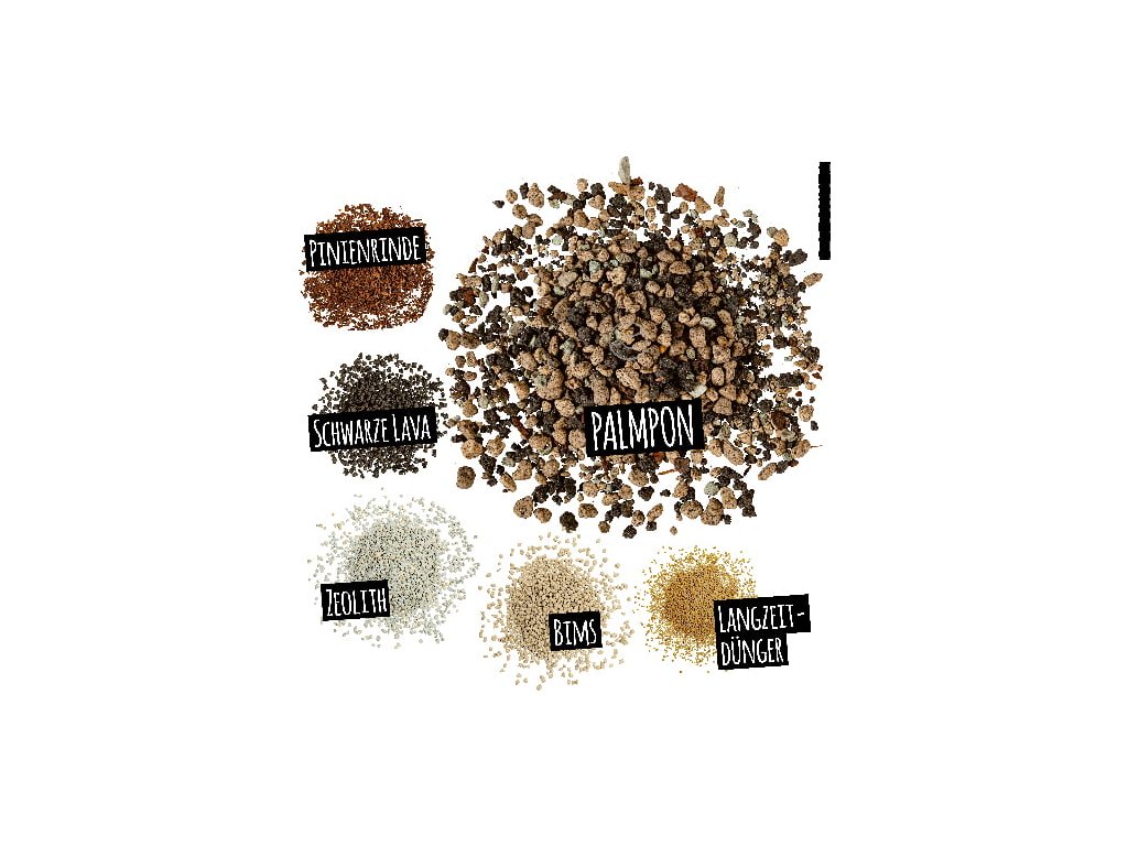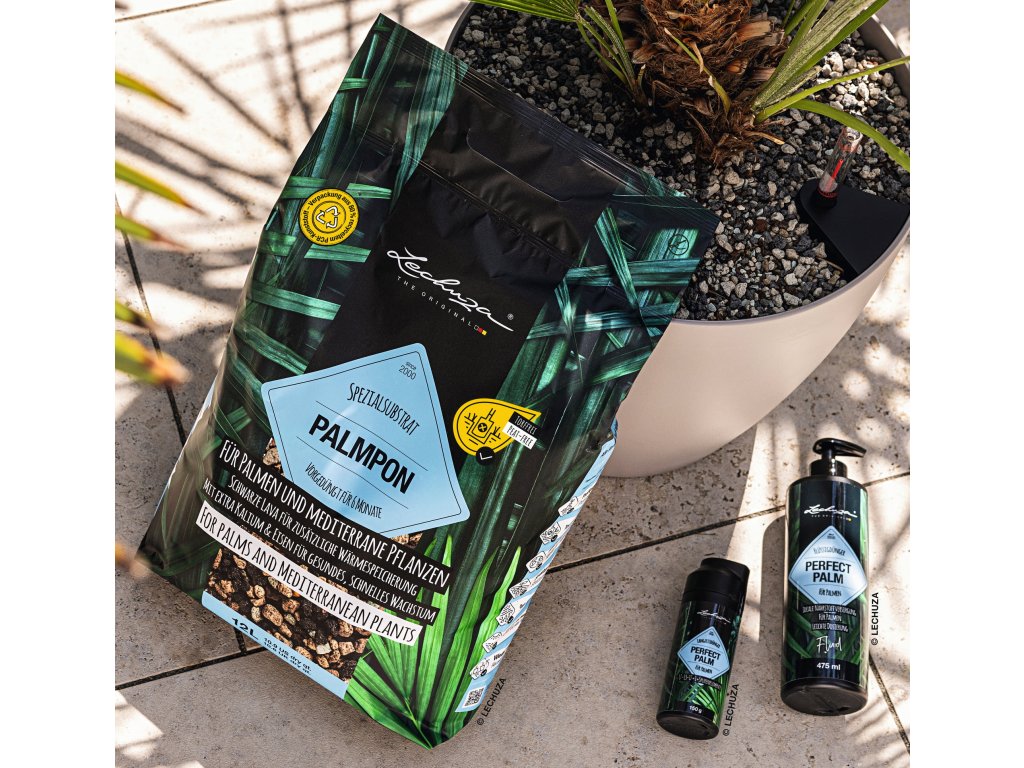 Lechuza PALMPON vytvoří ideální podmínky pro vaše tropické rostliny! Užijte si palmy s bujnými, zelenými listy a bujným růstem - díky tomuto rostlinnému substrátu bez rašeliny. Většina druhů palem má ráda mírně vlhkou půdu, ale je třeba se vyvarovat přemokření. Díky vysokému obsahu minerálních látek PALMPON optimálně dávkuje zásobu vody ve vaší nádobě a podporuje provzdušnění kořenů. Tímto způsobem se lze vyhnout zamokření a kořeny mohou silně růst. Kromě organických složek, jako je borová kůra, je PALMPON obohacen o černou lávu, která navíc uchovává teplo a přizpůsobuje se přirozeně tropickému prostředí. Draslík a železo zajišťují zdravý a rychlý růst. Prvních 6-8 měsíců po přesazení budou mít vaše palmy dostatek živin díky předhnojené receptuře. Z důvodu ochrany přírody je substrát bez rašeliny. PALMPON je také objemově velmi stabilní a zlepšuje stabilitu vašich palem v nádobě.