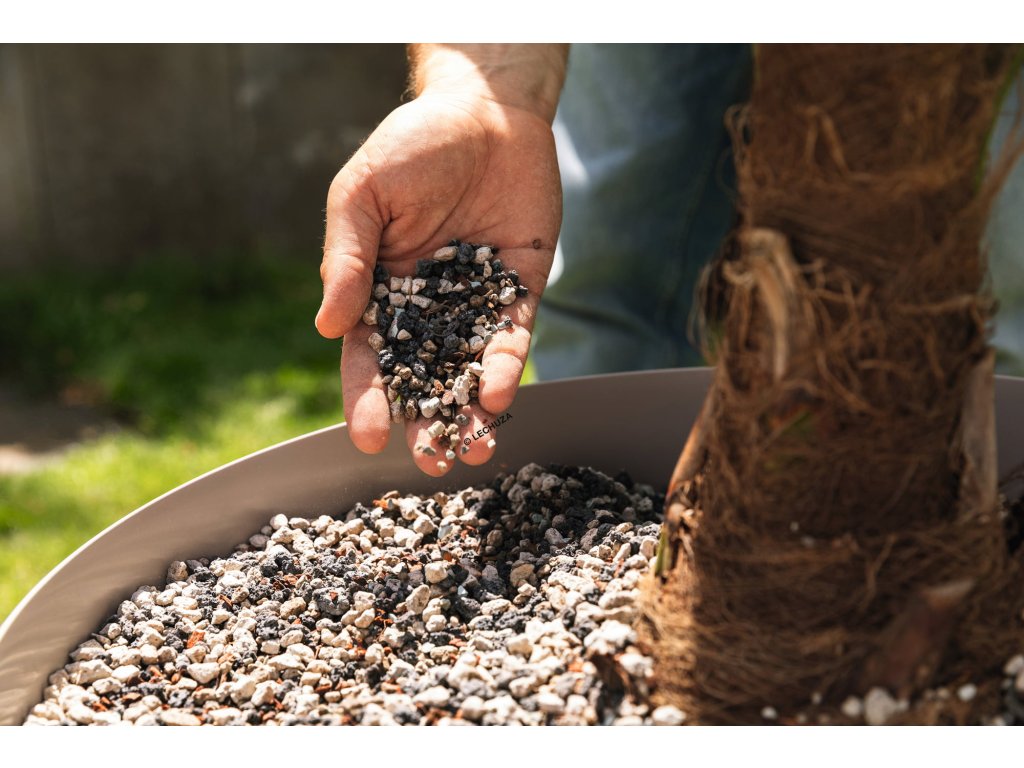 Složení: kámen (pemza, černá láva), zeolit, borová kůra, hnojivo (zejména pro palmy)